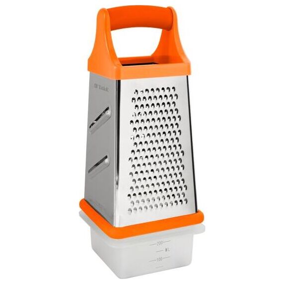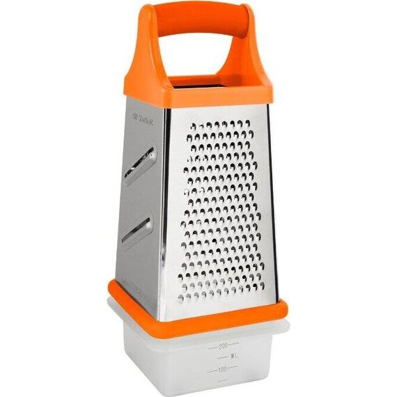 Многофункциональная терка с контейнером 4 в 1 Толщина стенок 0,3 мм Размер: 10,2*10,2*21 см Материал: высококачественная нержавеющая сталь, пищевой пластик Можно мыть в посудомоечной машине
