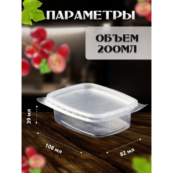 Максимальная выгода для крупного бизнеса Представляем вам оптовый набор из прозрачных прямоугольных контейнеров объемом 200 мл и герметичных крышек. Они идеально подходят для фасовки и хранения сметаны, творога, соусов, орехов, сухофруктов, салатов, готовых блюд и полуфабрикатов. Размер 108х82х41 мм удобен для порционной упаковки. Контейнеры и крышки выполнены из прочного пищевого полипропилена (ПП), который безопасен для продуктов и выдерживает заморозку. Крупнооптовая упаковка 1000 контейнеров + 1000 крышек — идеальный выбор для крупных производств, сетей общепита и служб доставки, обеспечивающий максимальную экономию и долгосрочный запас.