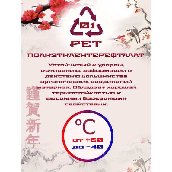 - Безопасный ПЭТ — прочный пищевой пластик, подходит для холодных продуктов.