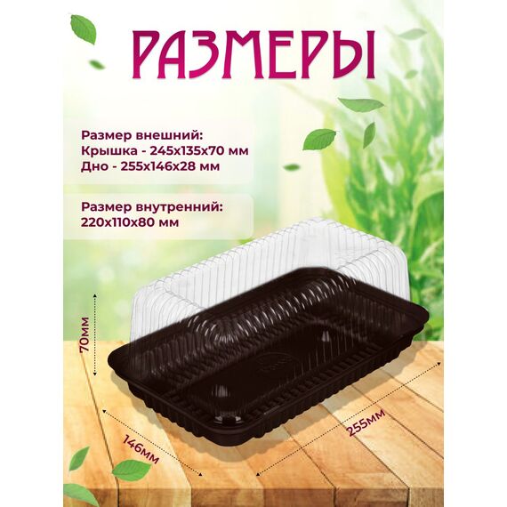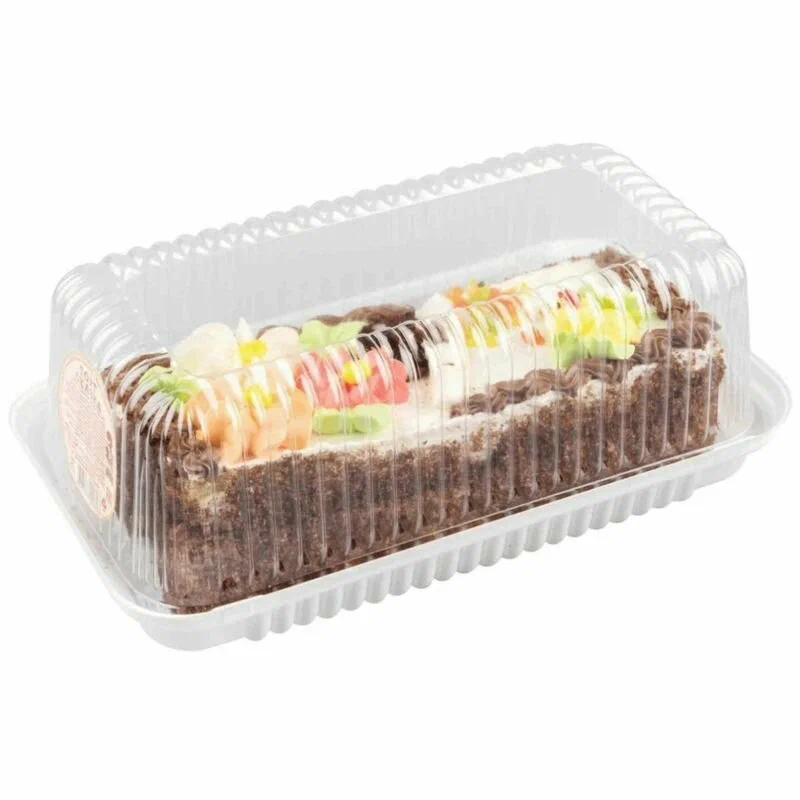 Упаковка для торта "Сказка" (тортница) прямоугольная, 280 шт — оптовая упаковка дно Т-2312ДШ (коричневое ПС, с шипами) + крышка Т-2312К (прозрачная ПЭТ) от «Комус-Упаковка»