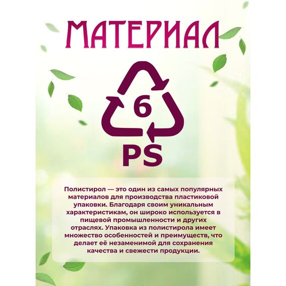 - Безопасные материалы — ПС и ПЭТ, сертифицированы для контакта с пищей.