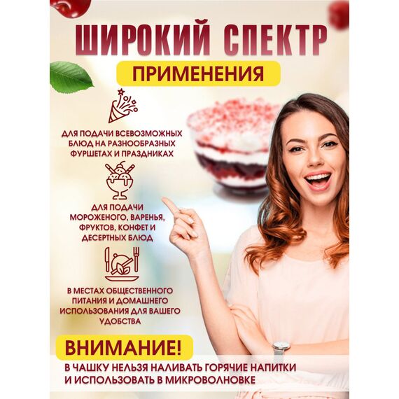 - Универсальность — для десертов, мороженого, салатов, закусок, ягод.
