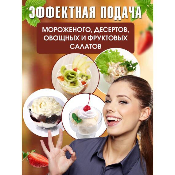 - Оптимальный объем 200 мл — идеально для порционных десертов, мороженого, муссов.