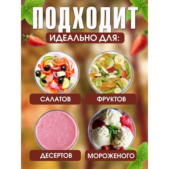 - Универсальность — для десертов, мороженого, салатов, соусов, закусок.