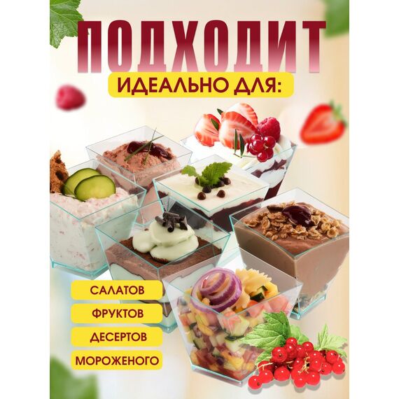 - Универсальность — для десертов, мороженого, салатов, закусок, ягод.