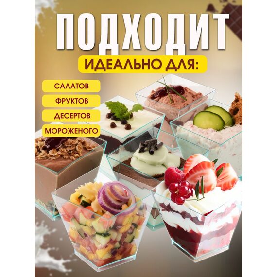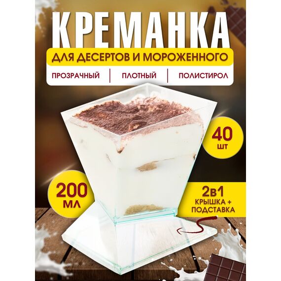 Стильная и практичная креманка для десертов, мороженого и соусов Представляем вам готовый комплект из прозрачных креманок "Сапфир" объемом 200 мл и герметичных крышек. Это идеальное решение для подачи и упаковки десертов, мороженого, фруктов, салатов и соусов. Элегантная форма, напоминающая драгоценный камень, привлекает внимание и делает подачу особенно красивой. Прозрачный материал позволяет видеть содержимое, а надежная крышка обеспечивает сохранность продукта. Упаковка 40 штук оптимально подходит для активного использования в кафе, кондитерских и службах доставки.