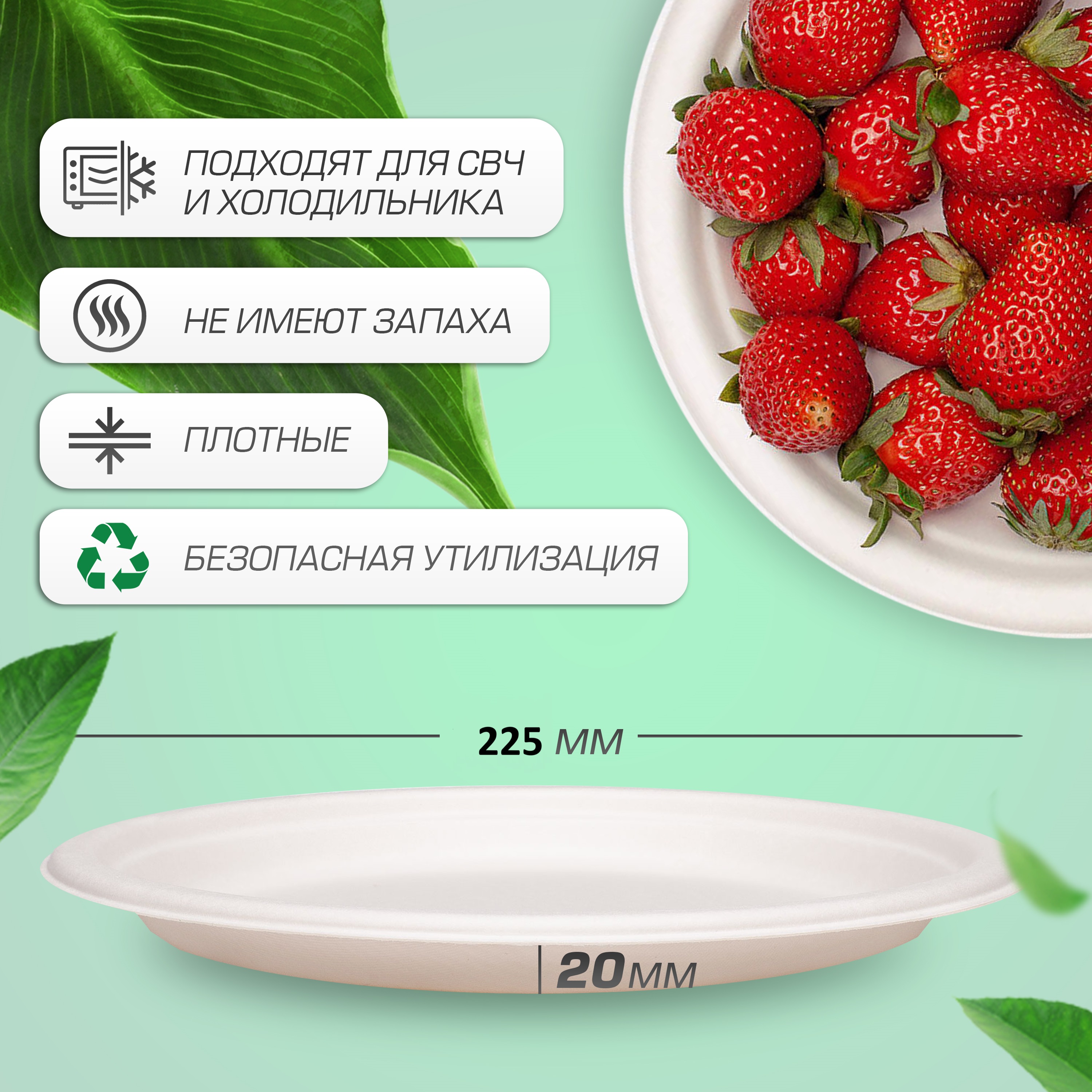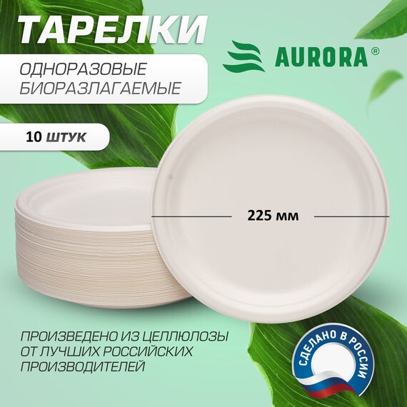 Увеличенный размер 225 мм для вторых блюд и салатов Представляем вам биоразлагаемые плоские тарелки увеличенного диаметра от производителя «Aurora». Они изготовлены из натурального сырья — биомассы мискантуса (ценного целлюлозосодержащего растения). Состав: 98% целлюлозной массы и 2% безопасных пищевых добавок . Это идеальный выбор для тех, кто заботится об окружающей среде и здоровье близких. Тарелки полностью разлагаются в земле за несколько месяцев, не выделяя вредных веществ. Размер 225 мм идеально подходит для вторых блюд, салатов и закусок.
