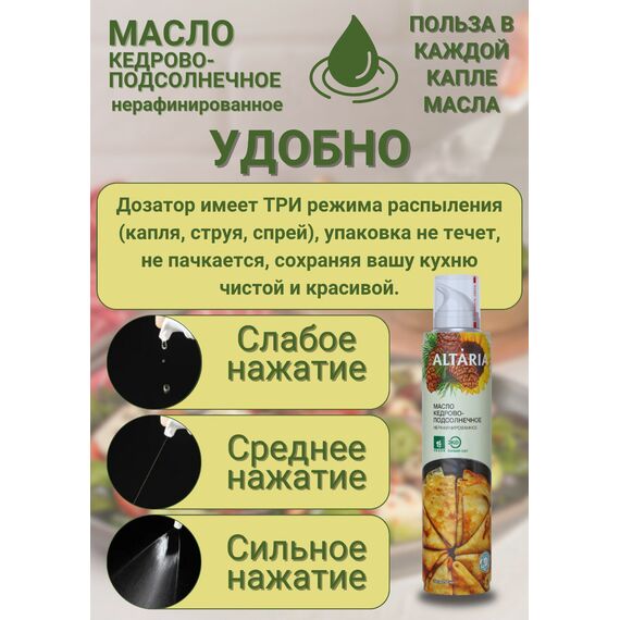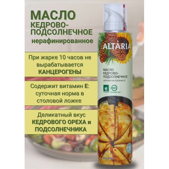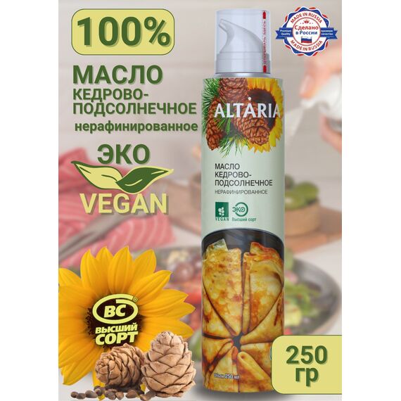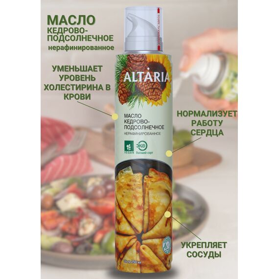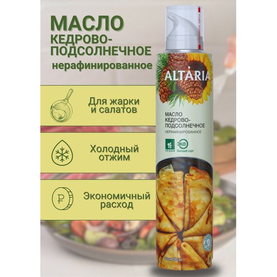Масло кедрово-подсолнечное нерафинированное Altaria с распылителем, 250 мл — сибирский деликатес для вашего здорового питания