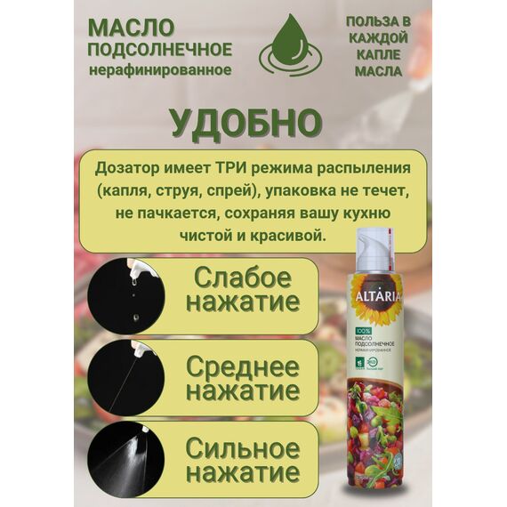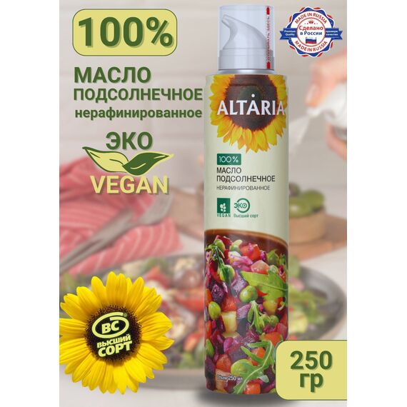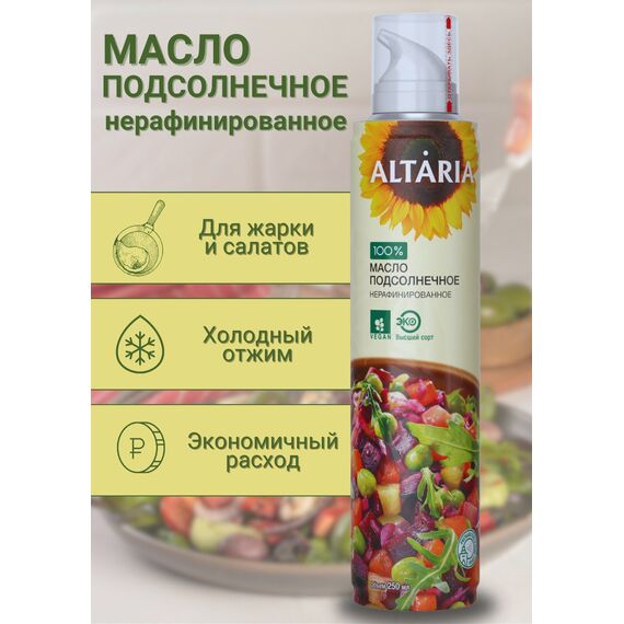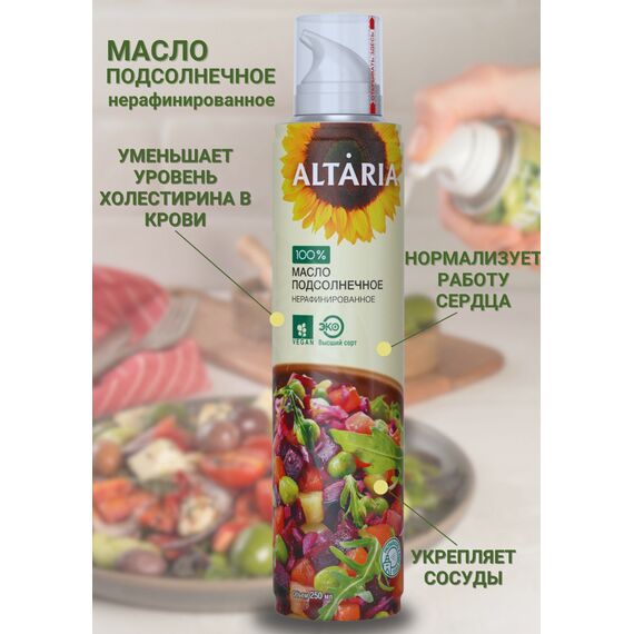 Масло подсолнечное нерафинированное Altaria с распылителем, 250 мл — вкус детства с заботой о здоровье