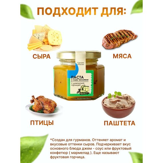 Идеальные пары для этой пасты Грушевая паста с дижонской горчицей создана для дуэта с самыми разными сырами: