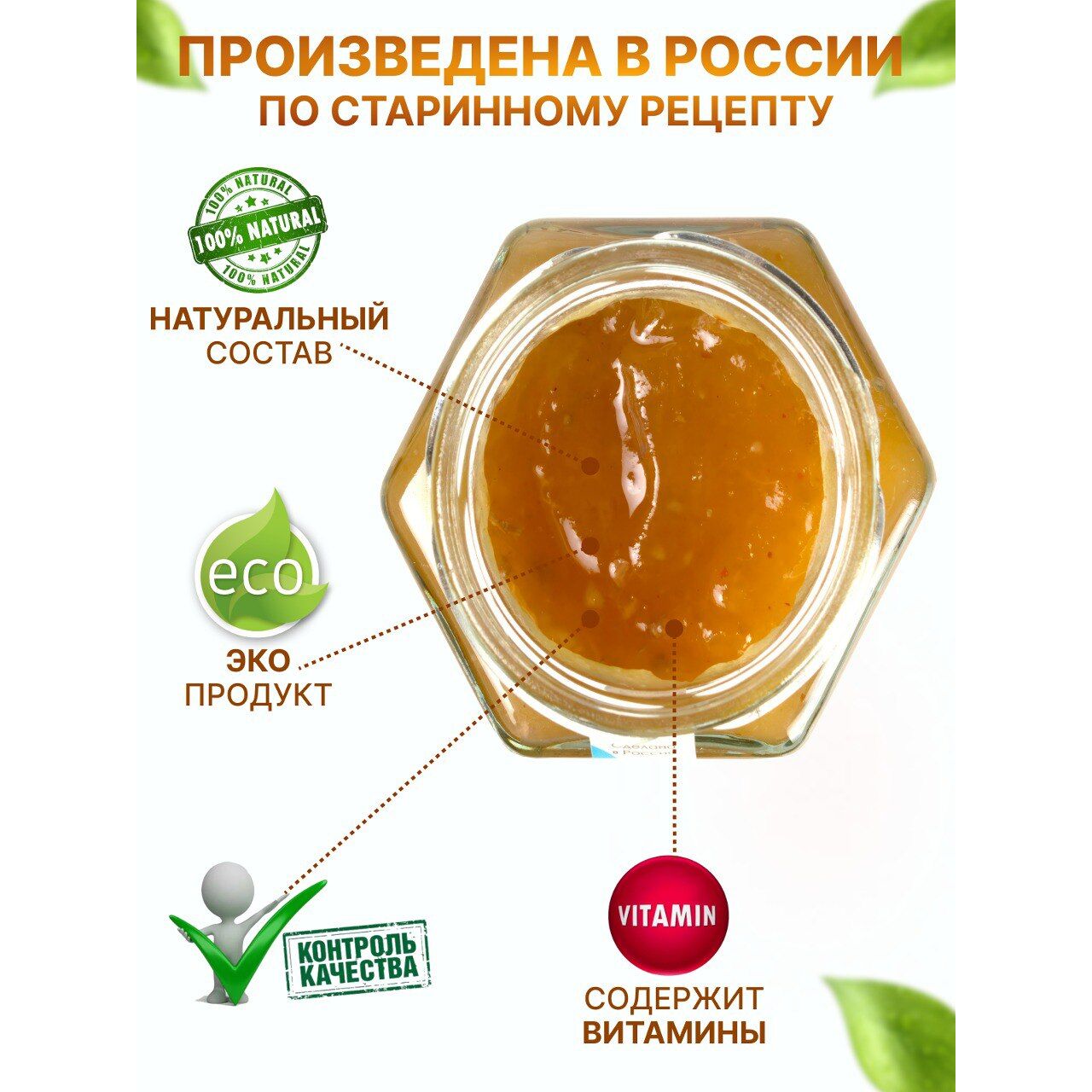 Натуральный состав по старинному рецепту Мы сохранили традиции приготовления: только натуральные фрукты, орехи и специи. Никаких искусственных добавок, загустителей и консервантов. Просто чистый, насыщенный вкус, который оценят гурманы и ценители здорового питания.