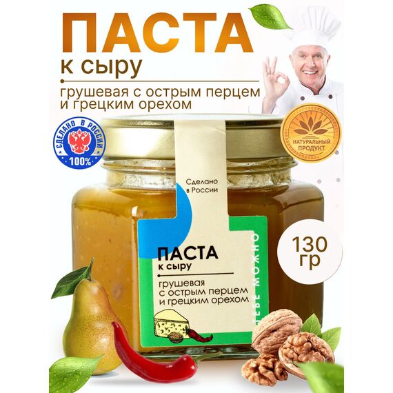 Изысканный баланс вкусов В отличие от привычных сладких джемов, эта паста обладает характером. Мягкая грушевая основа оттеняется пряным теплом острого перца, а кусочки грецкого ореха добавляют приятную текстурную нотку и послевкусие. Это не просто соус — это гастрономический аксессуар.