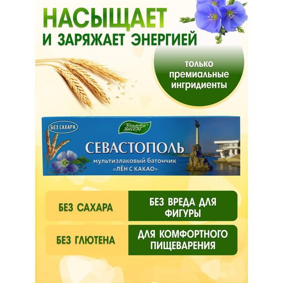 Мультизлаковые эко батончики "Лен с какао" без сахара — набор 5 штук по 50 г. Полезный перекус на всю неделю!