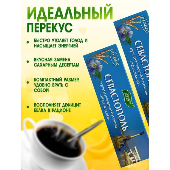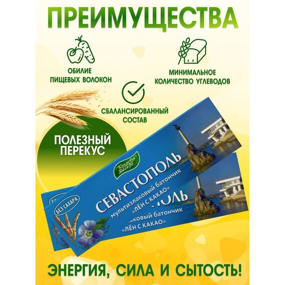 Сила пророщенного льна и энергия какао в удобном наборе Представляем вам набор из 5 мультизлаковых эко батончиков с уникальным сочетанием пророщенных семян льна и натурального какао. Пророщенные семена льна обладают повышенной биологической ценностью — они легче усваиваются организмом и содержат максимум полезных веществ . Какао же не только дарит насыщенный шоколадный вкус, но и оказывает бодрящее действие, повышает настроение и помогает справляться с усталостью . Это идеальный перекус для активных людей, спортсменов и всех, кто следит за своим здоровьем.