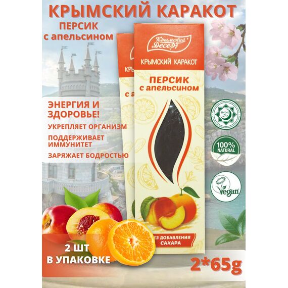 Двойное удовольствие без вреда для здоровья Представляем вам набор из двух упаковок традиционного крымского десерта каракот со вкусом сочного персика и ароматного апельсина. Это идеальное решение для тех, кто хочет попробовать разные варианты, взять с собой побольше или поделиться полезной сладостью с близкими. В каждой упаковке — порционные кусочки пастилы, готовые к употреблению в любой момент .