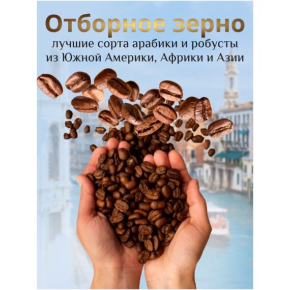 - 50% Робусты из Африки (Эфиопия) и Азии (Индия, Вьетнам) — обеспечивает насыщенность, крепость и плотную пену