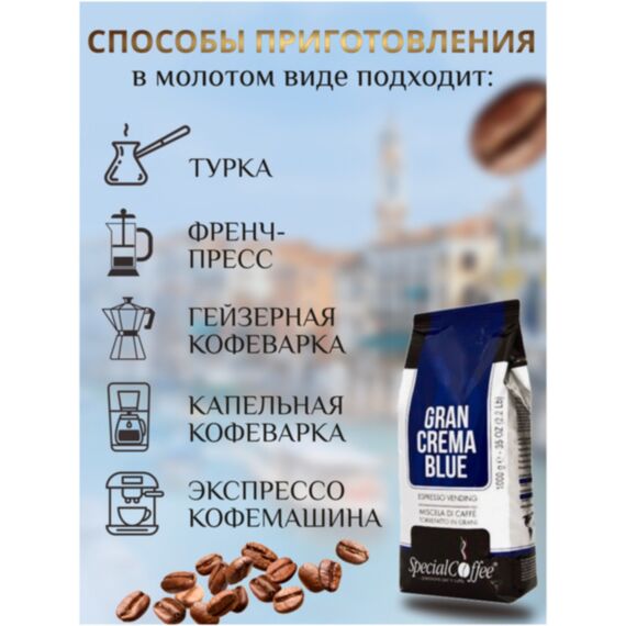 Кофе в зернах Special Coffee Gran Crema Blue 1 кг — крепкий итальянский кофе для автоматов и офиса