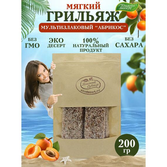 Грильяж без сахара, мультизлаковый "Абрикос" 200 г — солнечный вкус спелого абрикоса в полезном перекусе