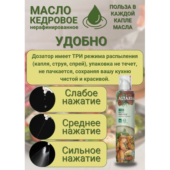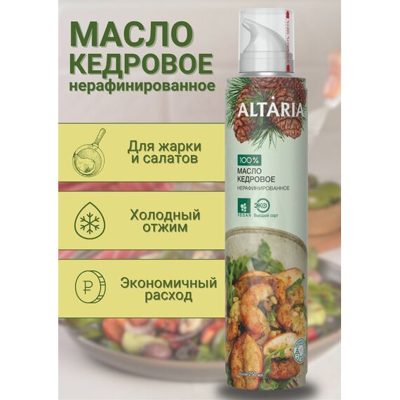 Масло кедровое нерафинированное Altaria с распылителем, 250 мл — драгоценный дар сибирской тайги