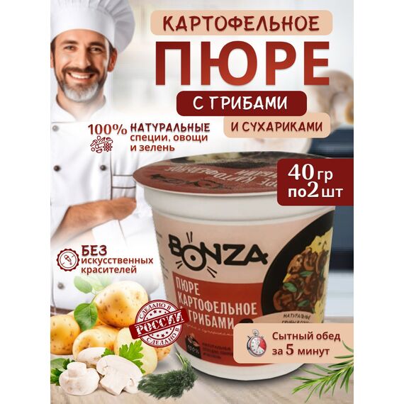 Пюре картофельное с грибами и луком BONZA 40г 2 шт
