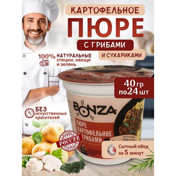 Пюре картофельное с грибами и луком BONZA 40г 24 шт