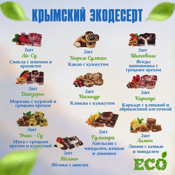Крымские традиции восточного гостеприимства Рахат-лукум — это изысканное лакомство с тысячелетней историей, которое дарит радость и хорошее настроение. ЭкоДесерт "Виды Крыма" — это уникальное ассорти, созданное по традиционным рецептам с использованием крымских фруктов и трав. В одной коробке собраны самые живописные вкусы полуострова, названные в честь его знаменитых уголков .
