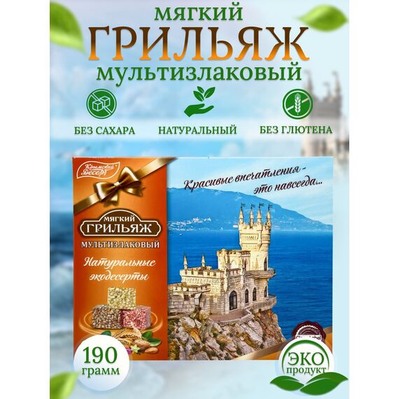 Крымский десерт "Мягкий грильяж" мультизлаковый, 190 г — сила злаков и витаминов для энергичной жизни
