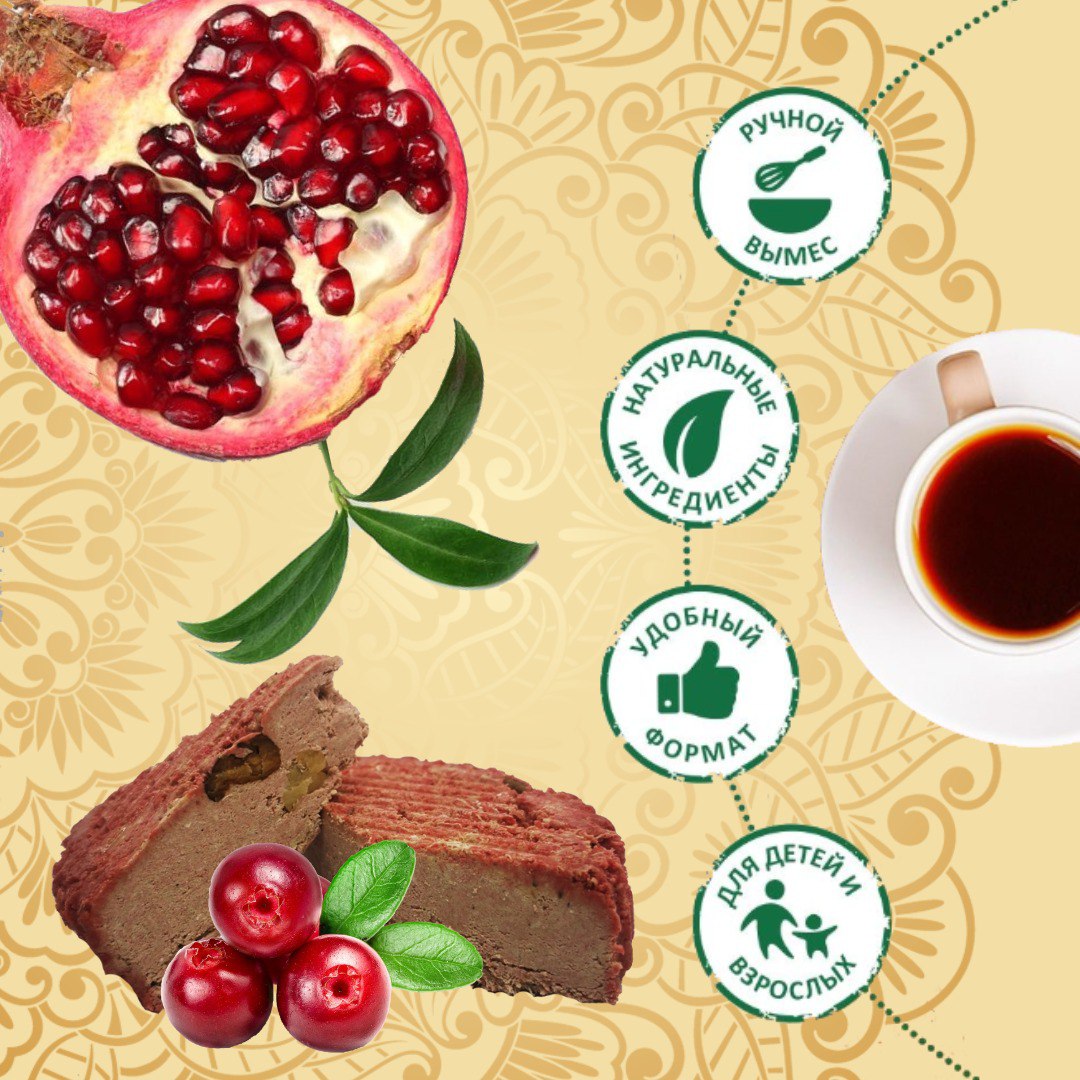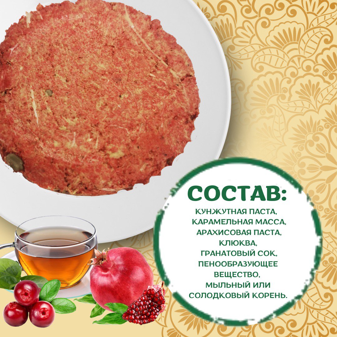 Взрыв вкуса: арахис, кунжут, гранат и клюква Представляем вам уникальную халву, в которой гармонично соединились лучшие традиции Востока и яркие акценты. В основе — классический дуэт: нежная тахинная (кунжутная) паста и сытный, любимый многими арахис. Но главное чудо происходит благодаря двум ингредиентам. Вместо обычной патоки здесь используется натуральный гранатовый сок, который придает халве благородную терпкость и изысканность. А завершает эту симфонию сушеная клюква — ее яркая кислинка вспыхивает на языке, делая каждый кусочек невероятно свежим и интересным. Это не просто халва, а настоящее гастрономическое приключение.