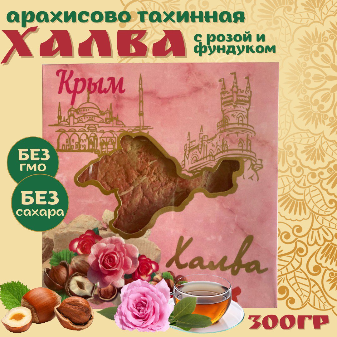 Халва арахисово-тахинная Крымская с розой и фундуком 300 г — восточная сказка с лепестками роз и благородным орехом