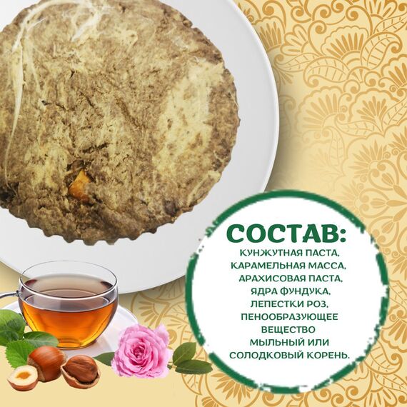Утонченная нежность розы и хруст фундука Представляем вам самую изысканную и романтичную халву в нашей коллекции. В основе — классическое, идеально сбалансированное сочетание сытного арахиса и нежной тахинной (кунжутной) пасты. Но настоящая магия начинается с добавок. Благородный фундук придает халве насыщенный ореховый вкус и приятный хруст. А лепестки розы (или натуральный ароматизатор розы) окутывают этот союз тонким, едва уловимым цветочным ароматом, который переносит в стамбульские кофейни и персидские сады. Это не просто халва, а настоящая поэма в восточном стиле.