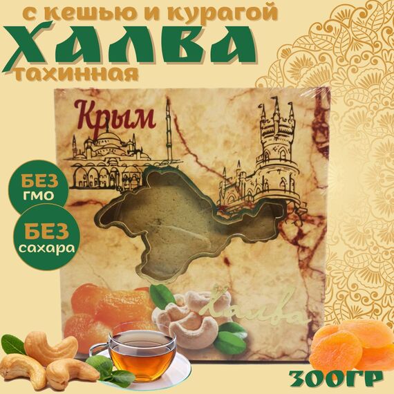 Халва тахинная Крымская с кешью и курагой 300 г — нежный дуэт ореха и фрукта