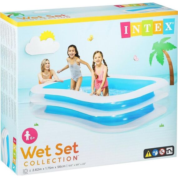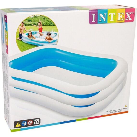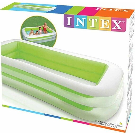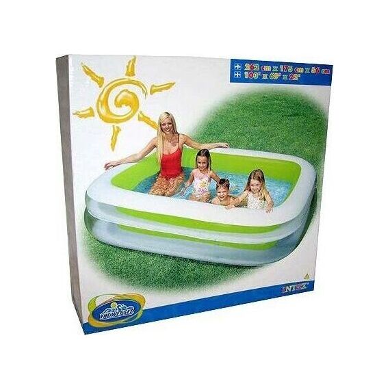 Прямоугольный надувной бассейн "Семейный" INTEX идеально подойдет для использования на даче и природе. Удобная сливная пробка позволяет быстро освободить бассейн от воды. Размер в надутом состоянии: 262х175х56 см.