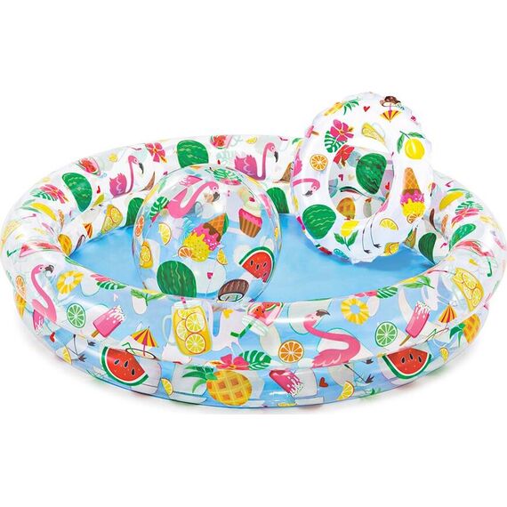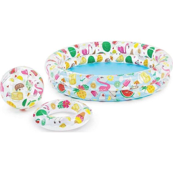 Комплект из надувного бассейна, мяча и круга — это отличный подарок любому ребёнку старше 3 лет! С таким набором чадо сможет освежиться в летний зной, разнообразить досуг, а также побороть боязнь воды. Каждый предмет можно использовать по отдельности. Например, взять круг и мяч в поездку на море. Размер: 122х25 см.