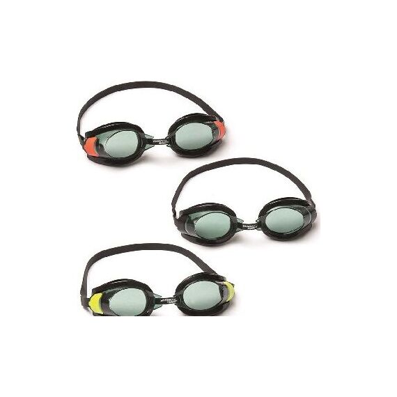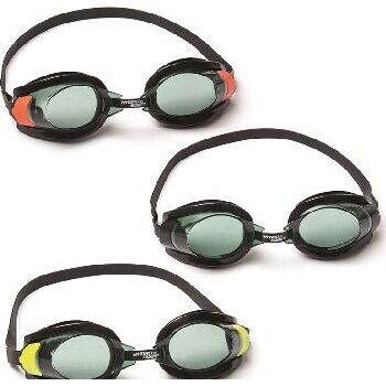 1 пара очков, 3 цвета в ассортименте Для детей старше 7-ми лет. Мягкие и удобные наглазники. Линзы с широким углом обзора. Полностью регулируемая переносица и силиконовый ремешок.