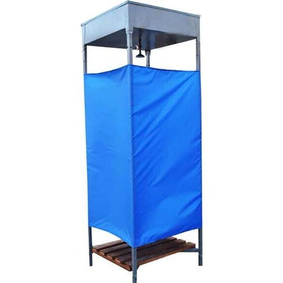 Бак - оцинкованная сталь, каркас - профильная труба 30/30 мм, деревянный поддон, штора из водоотталкивающей ткани " Оксфорд" Емкость бака: 128 л Размеры бака: 800х800х200 Размер каркаса: 800х800х2500 Шланг с лейкой для душа Металлический кран Стенки: шторка из водоотталкивающего материала Вес установки: 34 кг бак для воды – 1 шт., деревянная подставка для ног (поддон) - 1 шт., шланг с лейкой – 1 шт., металлический кран - 1 шт., каркас – 1 шт., шторка из водоотталкивающей ткани " Оксфорд"– 1 шт., инструкция по эксплуатации – 1 шт.