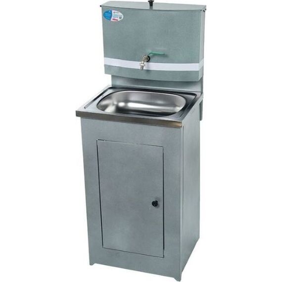 Бак - оцинкованная сталь, Объем бака - 20 л, раковина - нерж. Сталь, тумба - черный металл Преимущества умывальника «Акватекс» перед аналогичными моделями других производителей: Гальваническое цинковое покрытие бака (новая технология); Продукция сертифицирована; Металлический шаровый кран; Усиленная стойка бака; Отсутствие петель (источник появления коррозии); Тумба на ножках (циркуляция воздуха под тумбой сохраняет ЛКП от преждевременной коррозии); Увеличенная дверца тумбы (для удобства выемки отливной тары); Увеличенная высота тумбы; Коробка евростандарта с ручками (удобство транспортировки). Пробка в баке для слива воды.