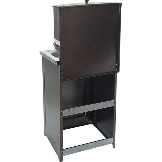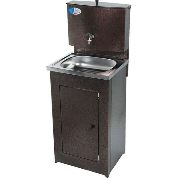 Бак - оцинкованная сталь, Объем бака - 20 л, раковина - нерж. Сталь, тумба - черный металл. Размеры умывальника: 55 х 150 х 45. Вес: 12 кг. Преимущества умывальника «Акватекс» перед аналогичными моделями других производителей: Гальваническое цинковое покрытие бака (новая технология); Продукция сертифицирована; Металлический шаровый кран; Усиленная стойка бака; Отсутствие петель (источник появления коррозии); Тумба на ножках (циркуляция воздуха под тумбой сохраняет ЛКП от преждевременной коррозии); Увеличенная дверца тумбы (для удобства выемки отливной тары); Увеличенная высота тумбы; Коробка евростандарта с ручками (удобство транспортировки). Пробка для слива воды в баке.