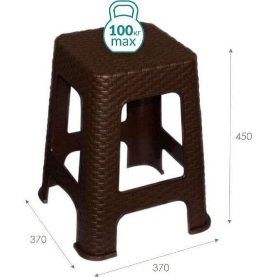РАЗМЕР ИЗДЕЛИЯ: 372 x 372 x 450 мм МАТЕРИАЛ: Полипропилен Предмет мебели из пластика, предназначенный для сидения. Имеет текстуру натурального плетения «Ротанг». Удобен для использования как внутри жилых и рабочих помещений, так и на открытом воздухе. Гармонично впишется в любое пространство для отдыха и работы. Широкое сиденье позволит с комфортом сидеть на табурете длительное время. Высота в 45 см комфортна для сидения за столом стандартной высоты. Легкие табуреты конусной формы удобно штабелируются друг на друга, обеспечивая экономию пространства при хранении.