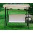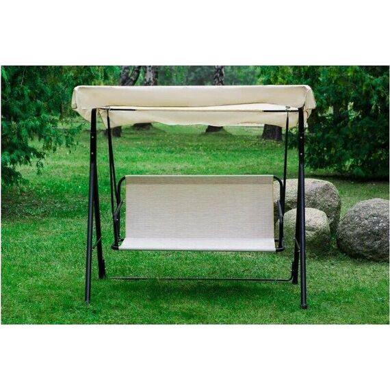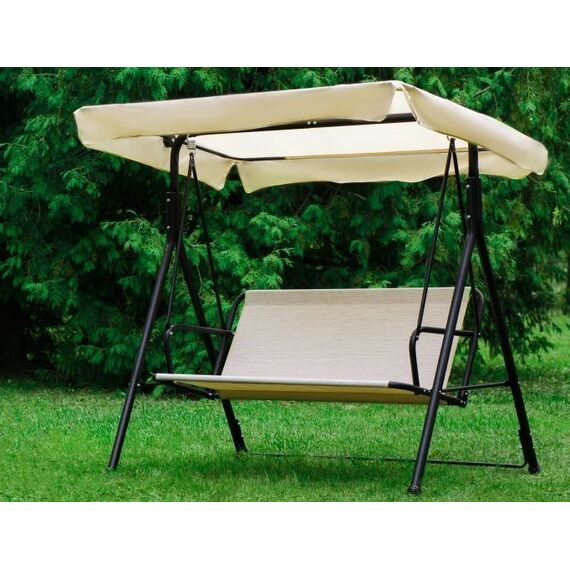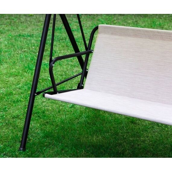 Габаритные размеры сиденья, спинки и тента (длина х ширина), мм: размеры сиденья: 1145х430. размеры спинки: 1145х498. размер тканевого тента: 1570х1135. Каркас: труба стальная O38х1,2мм; дуга опорная - O32х1,4мм полимерное покрытие; Мягкий элемент: текстилен. Тент: ткань с водоотталкивающей отделкой 100% п/э плотность 80г/м2. Максимальная нагрузка, кг: 160.