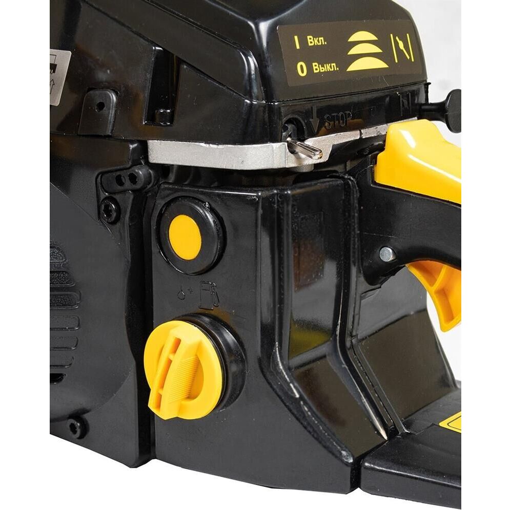 Вид топлива Бензин АИ-92 + Масло. Система гашения вибрации Да. Тип двигателя Бензиновый 2-х тактный с воздушным охлаждением. Шаг цепи 3/8. Толщина звена, мм 1,3. Тип стартера Ручной, с плавным пуском. Длина шины, дюйм 16. Мощность, л.с. 3.1. Тормоз цепи Да. Автоматическая смазка цепи Да. Объём, см3- 45. Длина шины, мм 400. Количество звеньев, шт. 57. Мощность, Вт 2300. Объем масляного бака, мл 210. Объем топливного бака, мл 550.