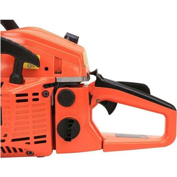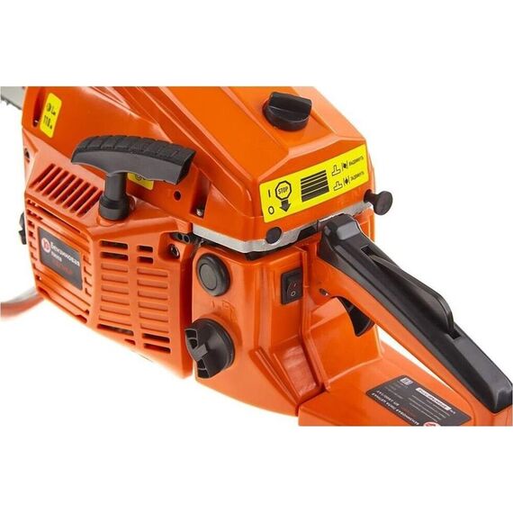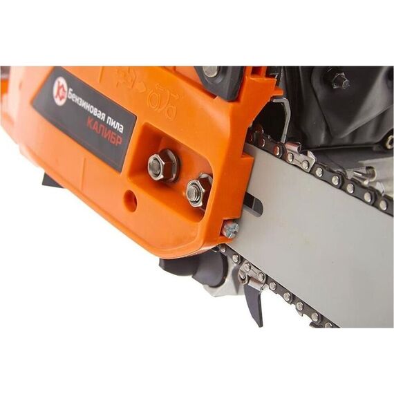 Пила бензиномоторная цепная Калибр БП-1800/16У предназначена для валки и раскряжёвки (распиливание на брёвна) деревьев, заготовки дров и выполнения других строительных работ. быстрая остановка хода удобство эксплуатации и обслуживания Характеристики Мощность двигателя 1800 Вт/2.45 л.с Макс. число оборотов двигателя на х./х 2900 об/мин Макс. частота вращения вала без нагрузки Ёмкость масляного бака 260 мл, Ёмкость топливного бака 550 мл, Длина шины, дюйм/см 16/40 дюйм/см, Кол-во ведущих звеньев цепи 57 шт, Средний уровень звуковой мощности 110 дБ(А), Габаритные размеры в упаковке 510х260х270, Вес 6,9/6,1
