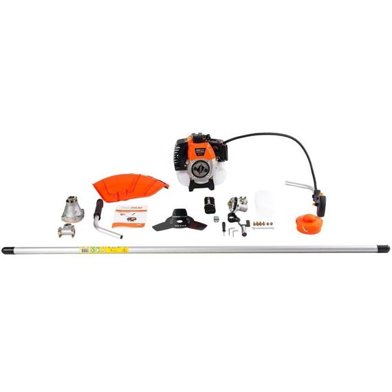 Вес (кг): 6.9 Диаметр лески (мм): 2.4 Двигатель: 2-тактный Объем двигателя (см³): 52 Диаметр скашивания, нож (мм): 255 Мощность двигателя (л.с.): 2.3 Топливо: бензин АИ-92 + масло для 2-тактных двигателей Штанга: неразъемная Объем бака (л): 1.2 Диаметр кошения, леска (мм): 440