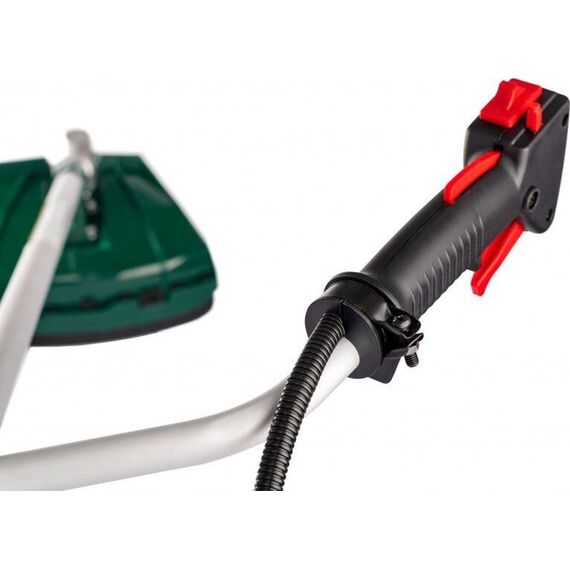Потребляемая мощность (л.с.) 3.3. Объем двигателя (м3) 56. Тип двигателя Двухтактный. Объем топливного бака (л) 1.2. Скорость вращения (об/мин) 9000. Ширина кошения нож/леска (мм) 255/440. Диаметр лески (мм) 2.4. Регулируемая рукоять велосипедного типа Да. Легкий доступ к воздушному фильтру Да. Защита топливного бака Да. Работа ножом и леской Да Комплектация Шпуля Да. Канистра для топливной смеси Да. Наплечный ремень Да. Набор инструментов Да. Кожух Да. Трехлопастной нож Да.