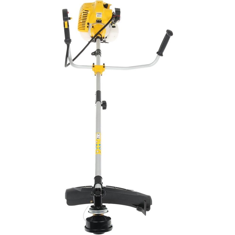 Бензиновый триммер Huter GGT-1900S – это техника, необходимая в быту для скашивания травы и крупных кустарников. С помощью данного устройства можно удалить густые заросли и бурьяны с минимальными усилиями. Инструмент обладает современным дизайном, компактным корпусом и простым управлением. В качестве топлива используется обычный бензин, а для охлаждения мотора применяется специальная воздушная система. В комплект входит ремень, который упрощает использование оборудования, снижая нагрузку на пользователя. Мощность: 1900 Вт. Тип двигателя: бензиновый. Число тактов: 2. Способ охлаждения: воздушный. Объем двигателя: 51,7 см3. Мощность двигателя: 2,58 л.с. Тип топлива: бензин АИ-92. Тип штанги: разъемная. Система гашения вибрации: есть. Тип режущего инструмента: леска / нож. Ширина скашивания леской: 460 мм. Ширина скашивания ножом: 255 мм. Резьба триммерной катушки: М10х1,25 LH. Посадочный диаметр: 25,4 мм. Тип ножа: 3Т. Приводной вал: жесткий. Обороты двигателя: 9500 об/мин.