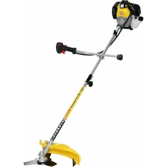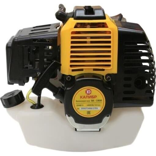 Бензиновая коса Калибр БК-1800 предназначена только для скашивания травы и подравнивания краёв газонов. ручной стартер Характеристики Двигатель: Модель двигателя 1Е40F-5, Тип двигателя 2-х тактный, Способ охлаждения воздушный принудительный, Максимальная мощность 1800 Вт/2.4 л.с, Карбюратор мембранного типа, Зажигание бесконтактное электронное, Способ запуска ручной стартер, Топливо смесь бензина АИ-92 (неэтилированного) с маслом для 2-х тактных двигателей, Тип свечи зажигания для 2-х тактных двигателей, Ёмкость топливного бака 1.2 л, Коса: Диаметр лески 2.4 мм, Максимальная ширина скашивания леской 440 мм, Диаметр режущего ножа 255 мм, Рукоятка управления J-образная, Уровень вибрации на ручках 7.5 м/с2, Давление звука 110 дБ(А)