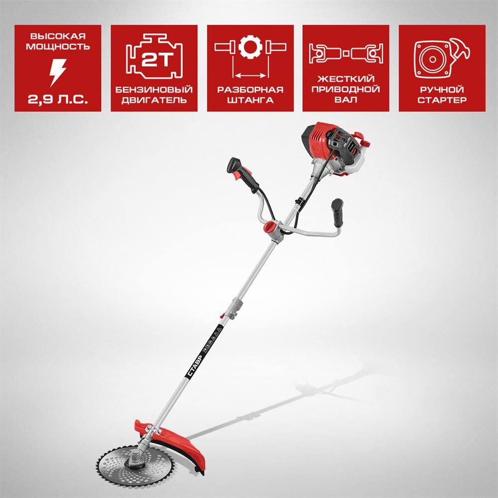 Триммер бензиновый СТАВР ТБ-2100ШР, 51,7сс, 2,9л.с., разборная штанга, бак 1л, нож 3Т, катушка, плечевой ремень, сумка для инструментов, праймер, скашивание 420/255мм