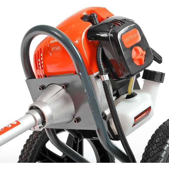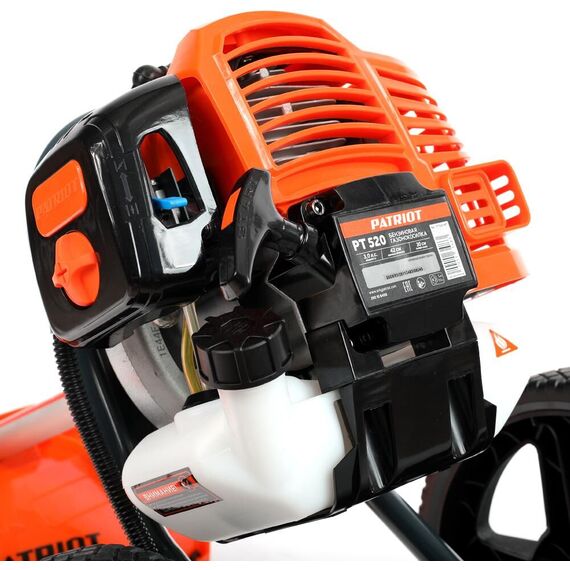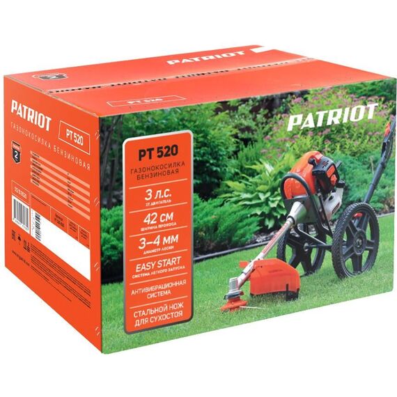 Ширина скашивания, см 42. Мощность двигателя, л.с. 3. Объем двигателя, см3- 52. Объем топливного бака, л 0,85. Частота вращения, об/мин 8000. Тип двигателя 2-х тактный бензиновый. Тип топлива смесь 40: 1 (бензин АИ 92 + масло Patriot G-Motion). Диаметр колес (передние/задние), мм 300. Тип рукоятки складная.