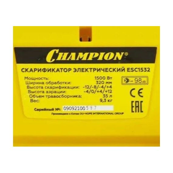 Мощность двигателя 1500 Вт, Напряжение сети 230,50 В, Гц, Вес c травосборником 9,3 кг, Ширина обработки 320 мм, Высота аэрации -4/0/+4/+12 мм, Высота скарификации -12/-8/-4/+4 мм, Тип/объем травосборника ткань/35 л, Регулировка высоты кошения/количество положений 4, Уровень мощности звука 96 дБ, Уровень звукового давления скарификатор/аэра 80/81 дБ, Уровень вибрации на рукоятке 3,245/3,335 (K=1,5 м/с) м/с2.