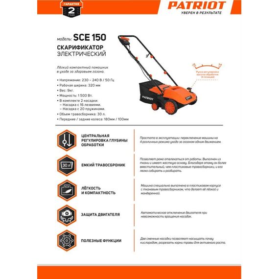 Скарификатор PATRIOT 512309150 SCE 150 Скарификатор электрический