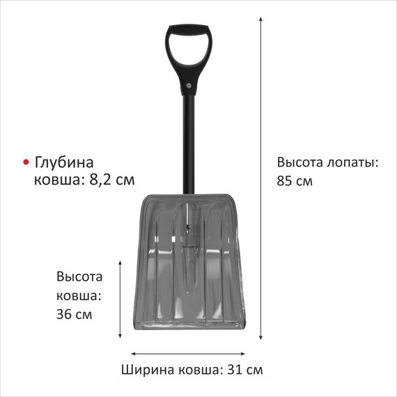 Благодаря оптимальной длине (85 см) и небольшому весу (1 кг) автомобильная лопата удобна в использовании. Эргономичная D-образная рукоять обеспечивает комфортный хват и удобство хранения на крючке. Неломающийся ковш из поликарбоната увеличенной глубины Облегченный черенок из материала файбергласс Эргономичная D-образная рукоять обеспечивает удобный хват Длинна лопаты: 85 см Вес лопаты: 1 кг Габариты ковша: 31х36х8,2 см Материал ковша: поликарбонат Материал черенка: файбергласс Тип рукояти: D-образный Материал рукояти: полипропилен Страна производитель: Россия